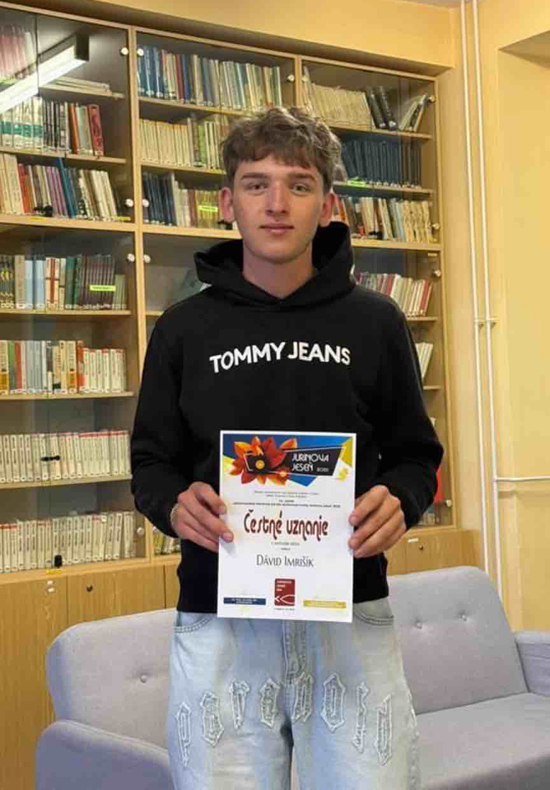 Dávid Imrišík s diplomom z Jurinovej jesene