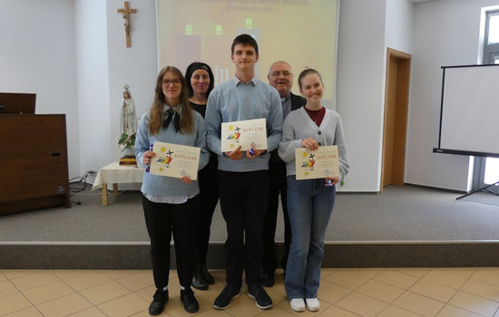 Diecézneho (krajského) kola Biblickej olympiády sa 9. apríla 2025 zúčastnilo 11 trojčlenných družstiev v prvej kategórii (ZŠ) a 8 družstiev v druhej kategórii (SŠ). V priestoroch Diecézneho centra v Žiline podali žiaci Silvia Gavlasová z 1. A, Adam Tatarka z 1. A a Sofia Gilániová z 2. A úžasné výkony. Dokázali svoje vedomosti, čitateľskú gramotnosť, pri scénke umelecké nadanie a v silnej konkurencii stredných škôl obsadili 6. miesto. V súťaži nebolo udelené 5. miesto, pretože dve stredné školy mali zhodný počet bodov a obe obsadili 4. priečku. Žiakom srdečne blahoželám a verím, že sa na súťaži zúčastnia aj v budúcom školskom roku.