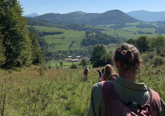 V krásny slnečný 27.september 2023 sa 17 žiakov zo Zelenej školy (z 2. A, 2. C, 3. B a 3. C) zúčastnilo vzdelávacej aktivity v rámci Enviroprojektu 2023 Zelená zbližuje. Nadviazali sme spoluprácu so Štátnou ochranou prírody SR, Správou Chránenej krajinnej oblasti Kysuce. S odbornou pracovníčkou tejto inštitúcie - Ing. Katarínou Kyselovou - sme v Hornom Vadičove skúmali miestny lesný ekosystém. Oboznámili sme sa so Štátnou prírodnou rezerváciou Ľadonhora v 5. (najvyššom) stupni ochrany prírody – s jej geologickou minulosťou, faunou, flórou i ochranárskymi aktivitami. Podľa botanického kľúča sme určovali miestne dreviny, všímali sme si rastliny (niektoré i chránené) i stopy zvierat (napr. líščí trus). Zamerali sme sa na rozmanité farebné odtiene lesa. Na posteri, znázorňujúcom ekosystém lesa, sme priraďovali názvy k jednotlivým zložkám. Pani Kyselová nás teda veľmi erudovane a zanietene zasvätila do fascinujúcich súvislosti lesného života, za čo jej veľmi pekne ďakujeme.