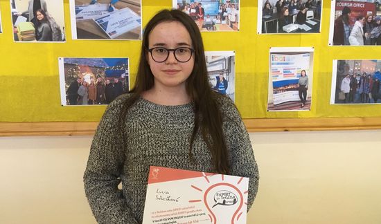 V súťažnej téme „Do you speak English“ sa na 86. mieste (zo 428 zúčastnených v kategórii 3. - 4. roč. SOŠ) umiestnila naša žiačka Lucia Sobčáková (3. A).