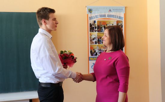 Na záver sa žiaci i vedenie školy rozlúčili s predsedníčkou ŽSK malou kytičkou a poďakovaním za návštevu.