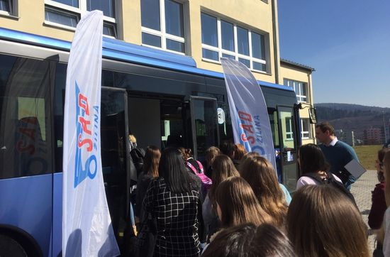 Jedinečnú príležitosť na to mali naši žiaci vo štvrtok 22. marca 2018, kedy na návštevu prišli páni zo Slovenskej autobusovej dopravy Žilina a Integrovanej dopravy Žilinského kraja. Veľký modrý autobus ihneď upútal zraky žiakov i učiteľov. Po krátkej, no poučnej prednáške zástupcu zo SAD Žilina Ing. Tašku a konateľa spoločnosti IDŽK Ing. Staškovana sa atmosféra uvoľnila a žiaci raz a znova ukázali, že sú plní dobrých nápadov a zaujímajú sa o svet, v ktorom žijú. Dozvedeli sme sa zopár pikošiek o našej pani riaditeľke, no i to, že dievčatám k šťastiu chýba napríklad zrkadielko na rannú úpravu v autobuse. Žiaci mali príležitosť vyjadriť sa k chýbajúcim spojom, čo aj patrične využili. Zástupcovia SAD nám vysvetlili aj koncept integrovanej dopravy v Žilinskom kraji, ktorého realizácia by sa mala začať v najbližších rokoch. Na záver nechýbali ani malé darčeky s logom spoločnosti SAD, za čo im ďakujeme.
