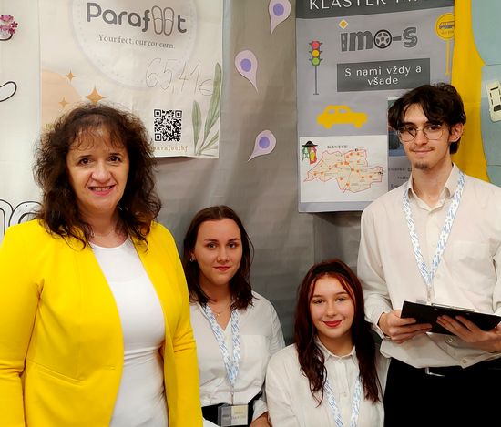 Naši žiaci Denisa ĎURANOVÁ, Simona TKADLECOVÁ a Matej SURIAK (IV. A trieda) pod vedením koordinátorky Ing. M. Kullovej vypracovali návrh pre realizáciu nového klastra pre žilinský región pod názvom IMO-S, s.r.o. – poskytovanie služby inovatívnej prepravy, so zameraním na výrazné zlepšenie dopravnej obslužnosti nášho regiónu.