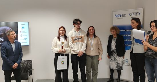 Naši žiaci svojim zaujímavým nápadom, prezentáciou na vysokej úrovni a kvalitným podnikateľským zámerom zaujali porotu a boli ocenení priamo riaditeľom Štátneho inštitútu odborného vzdelávania p. Ing. Branislavom Hadárom.