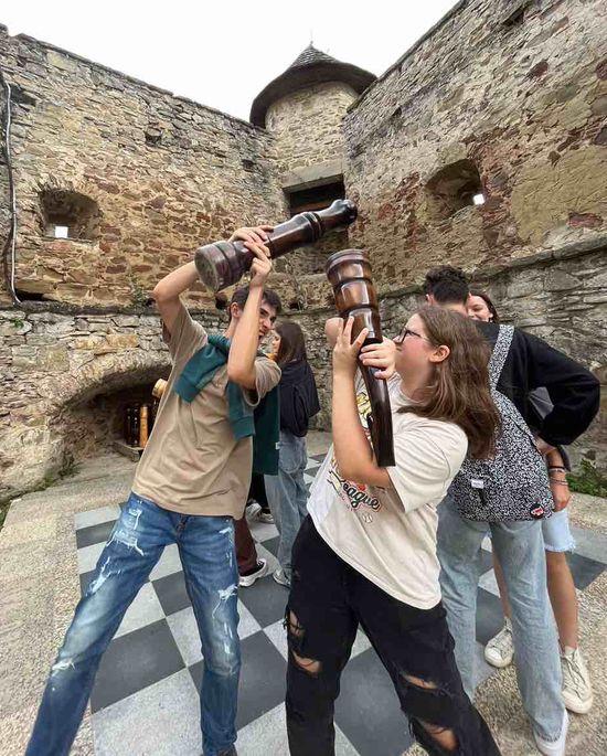 Cieľom našej prvej zastávky bolo mesto Kežmarok, v ktorom sme navštívili Drevený artikulárny kostol, kde sa natáčala známa rozprávka Perinbaba. Pôsobivou bola aj prehliadka Nového evanjelického kostola a Lyceálnej knižnice, ktorá je najväčšou školskou knižnicou v strednej Európe, obsahuje až 150 000 zväzkov kníh! Po prehliadke mesta Kežmarok, naša cesta smerovala do stredovekého mestečka Stará Ľubovňa, kde sme si urobili menšiu túru na Ľubovniansky hrad, týčiaci sa nad mestom. Hradom nás sprevádzala úžasná pani sprievodkyňa, ktorá nám ukázala všetky tajné zákulisia, porozprávala zaujímavé príbehy o panovníkoch spravujúcich hrad. K dobrej nálade prvákov, ktorí boli skvelí, prispelo aj pekné počasie.