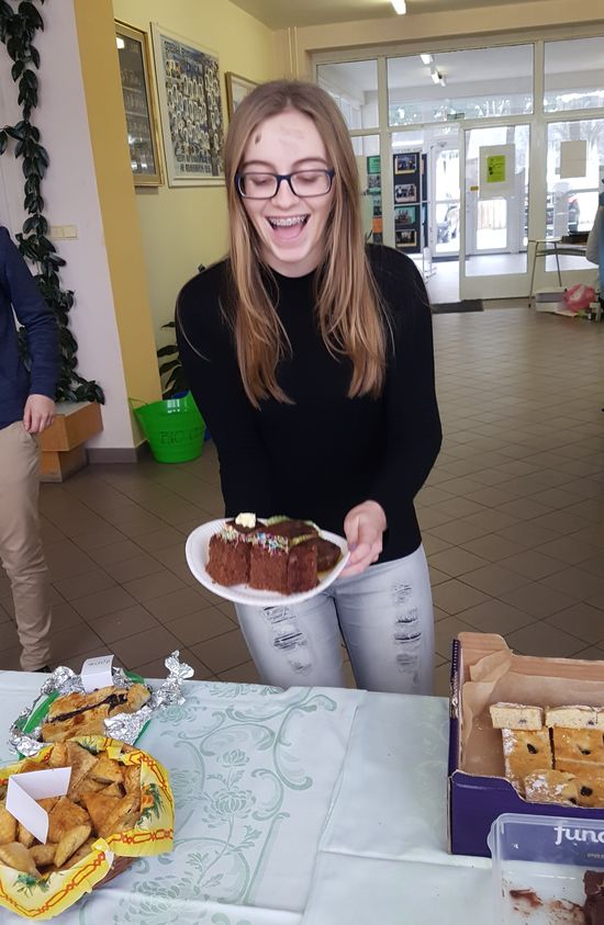 Ako vlastne žiaci pomáhali? Princíp tejto charitatívnej akcie spočíva v tom, že dobrovoľníci z celej školy z vlastných prostriedkov upečú vianočné zákusky, ktoré následne kupujú žiaci, učitelia a ostatní zamestnanci školy. Tento rok bol výnos z predaja podstatne vyšší než ten minulý, žiaci nakúpili koláčiky za krásnych 450,00 €.