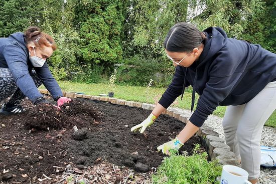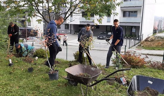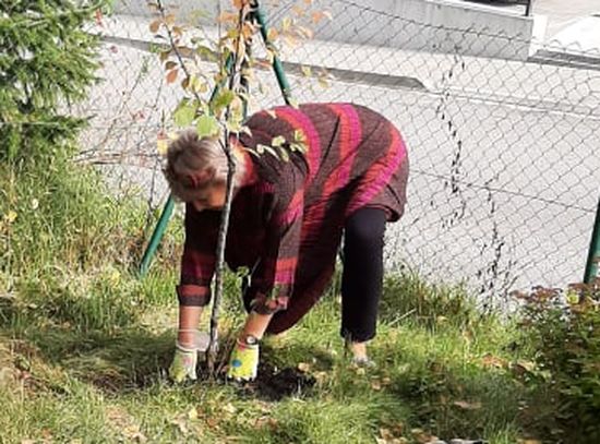 Slnečný utorok 28. septembra 2021 sme využili na realizáciu časti exteriérových prác v rámci nášho enviroprojektu Vdýchnime nový život zabudnutým priestorom školy. V spolupráci s Mestom Čadca (2 pracovníci) a nepedagogickými zamestnancami školy sme vysadili vyše 40 kusov okrasných drevín (jedľa, okrasné mandle, tavole, tavoľníky japonské a hortenzie). Centrálny kruh záhrady sme doplnili rozmanitými bylinkami, liečivkami a kríkmi drobného bobuľovitého ovocia (napr. čučoriedky, brusnice, echinacey, levandule, mätu, bazalku, ...). Na prácu sme využili aj nové pracovné náradie zakúpené z prostriedkov tohto enviroprojektu. Tak sme začali revitalizovať priestory, v ktorých v prípade priaznivého počasia môžu prebehnúť vyučovacie hodiny na rozmanité environmentálne témy, no záhrada nájde využitie i ako exteriérová zóna relaxu pre žiakov a zamestnancov školy podľa aktuálnych potrieb.