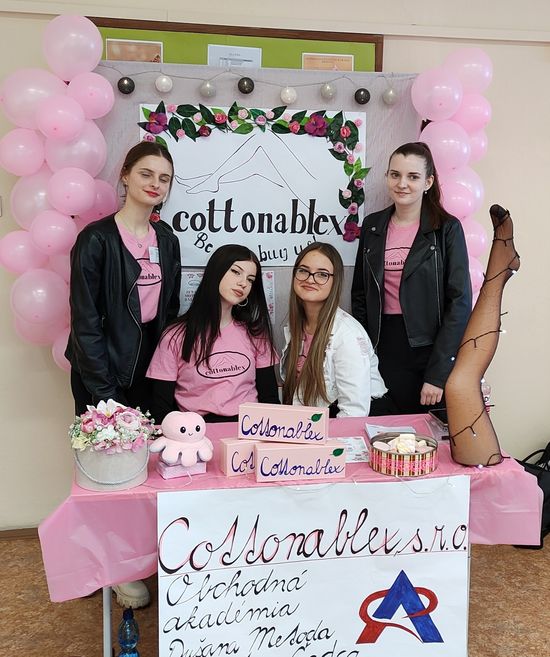 Žiačky IV. A triedy: Barbora Staníková, Natália Bielčiková, Gréta Hrancová a Marianna Šamajová so svojou cvičnou firmou COTTONABLEX, s.r.o. – výroba a predaj univerzálnych siloniek a žiačky IV. B triedy: Barbora Odrobiňáková, Júlia Poláčková a Viktória Švancárová so svojou cvičnou firmou ŠKOP, s.r.o. – výroba a predaj bezpečnostného náramku si vyskúšali, ako sa obchoduje a zlepšovali sa vo svojich prezentačných a komunikačných zručnostiach. Napriek tomu, že veľká tréma a obavy im neumožnili zúčastniť sa dôležitých súťažných disciplín, táto skúsenosť im otvorila nový pohľad na dôležitosť propagácie start up - u, nadviazali nové priateľstvá, inšpirovali sa prácou iných študentov.