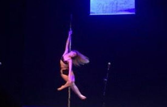Tanečné vystúpenie bolo síce len jedno, no zato dych berúce – pole dance v podaní Júlie Chmurčiakovej z 3. A.