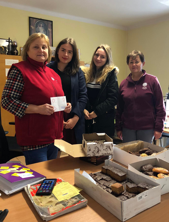 Šťavnaté a oku lahodiace koláče, ktoré upiekli niektorí žiaci v spolupráci s rodinnými príslušníkmi, nezostali dlho bez povšimnutia. Ich vôňa, ktorá sa šírila po celej škole, zasiahla chuťové poháriky nejedného z nás. Hlavnými kupujúcimi, ktorí chceli takto nezištne pomôcť blížnym, sa stali nielen žiaci, ale aj učitelia a ostatní zamestnanci školy.Finančný výťažok z predaja koláčov vo výške 700,- € sme rozdelili medzi Charitu sv. Gianny v Čadci a Detský domov Horný Kelčov.